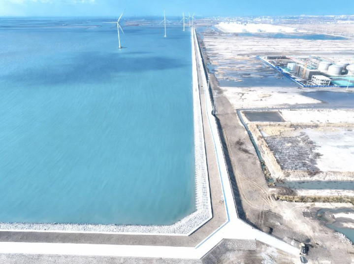 记者了解到,两段生态海堤工程设计创新性采用二级斜坡堤的主体结构形式,既保留了传统斜坡堤对波浪能量的消纳优势,又通过分级设计大幅提升堤体的整体稳定性与防灾减灾能力。在此基础上,工程全面应用生态护面结构,构建起适宜海洋生物栖息、繁衍的立体生境,最终实现生态修复与防灾减灾的协同增效,为海岸带生态安全屏障建设与可持续发展提供有力支撑,进一步提升了南港工业区的防潮防浪功能。(天津经开区供图)